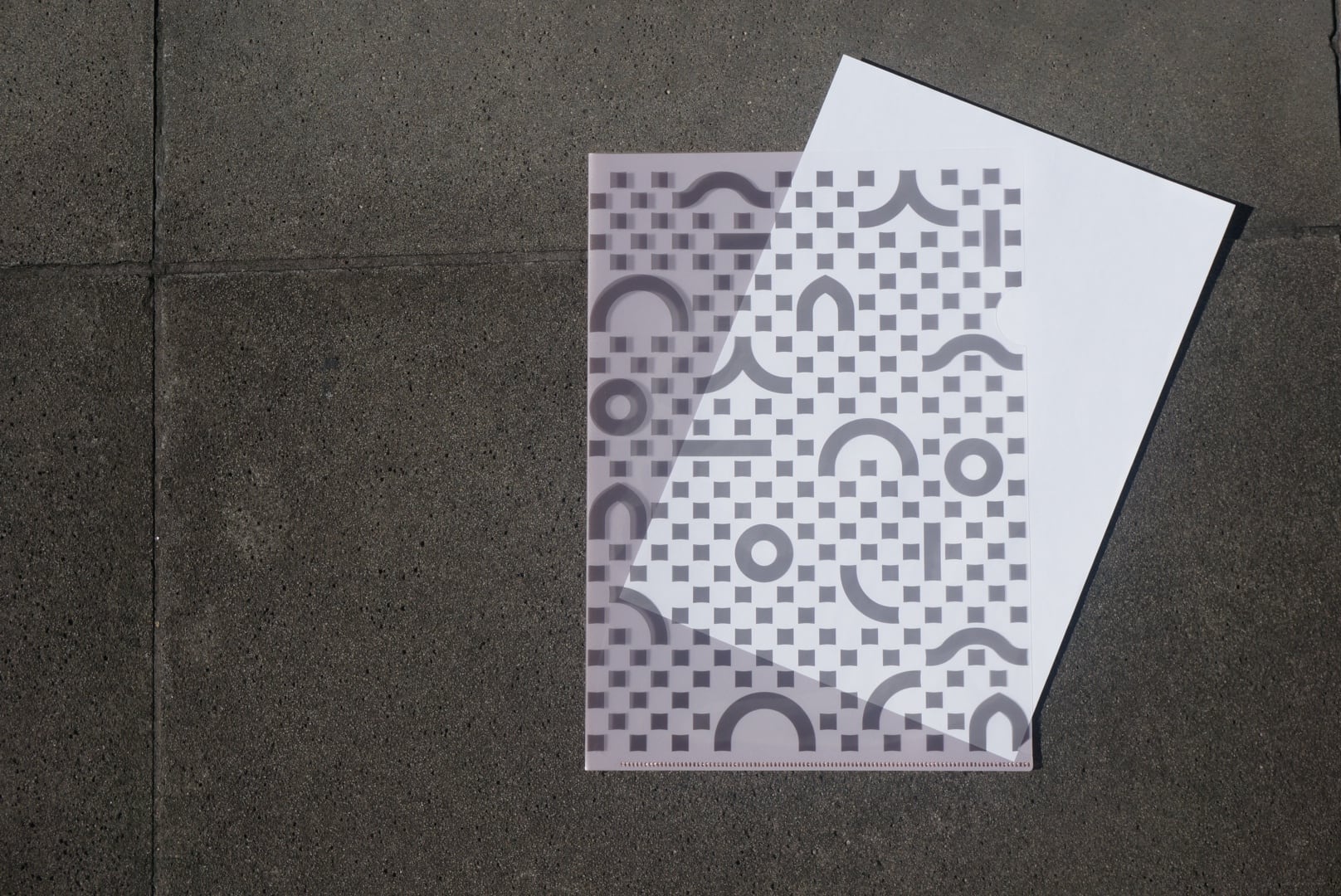 京都モダン建築祭のロゴをあしらった、グラフィカルなデザインのクリアファイル。