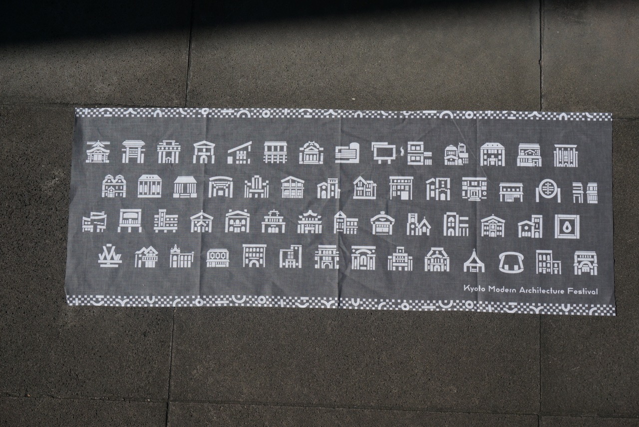 京都のまちなみや、モダン建築の多様な表情を一枚の布の上にちりばめました。